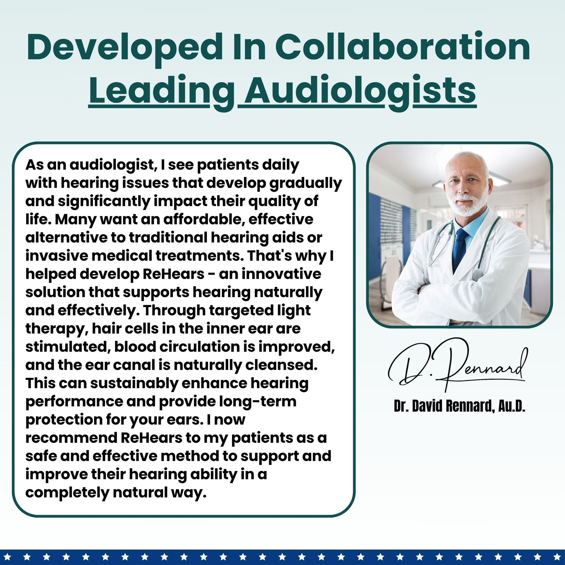 With ReHears, we combine modern technology with a natural approach to hearing improvement. Through continuous research and innovation, we work to provide the best possible solution for restoring your hearing.